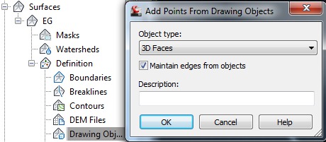 Many of the ways to add information into a surface can be easily discovered by right-clicking the option and selecting Add. Civil 3D gives you several ways to create a surface and populate that surface with data.